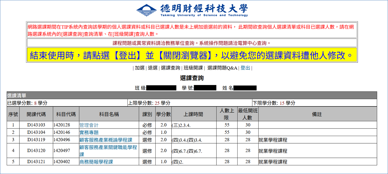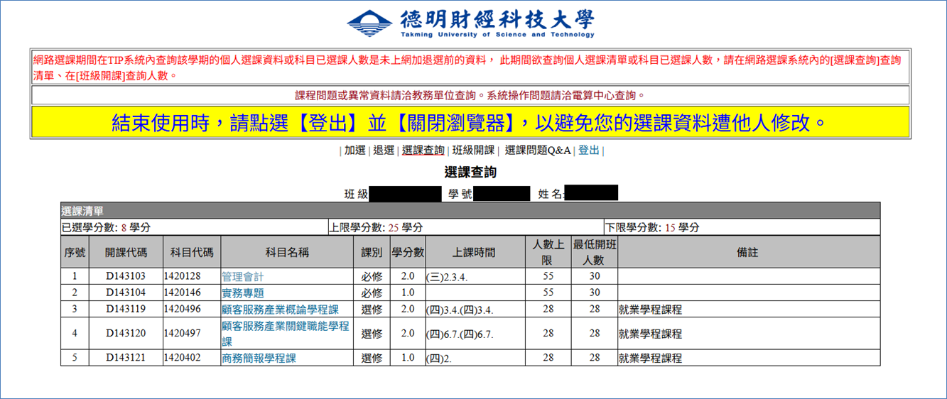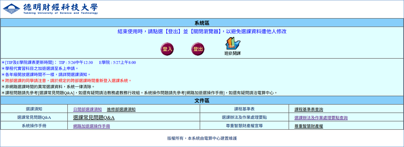 Y¥¼¨ì¶}©ñ®É¶¡¡A«ö<µn¤J¨t²Î>¡A·|Åã¥Ü ¥¼¶}©ñ¿ï½Ò ==> ¦U¦~¯Å¿ï½Ò¶}©ñ®É¶¡¤£¤@¼Ë¡A½Ð¬d¾\¿ï½Ò¶·ª¾ ªº°T®§¡C