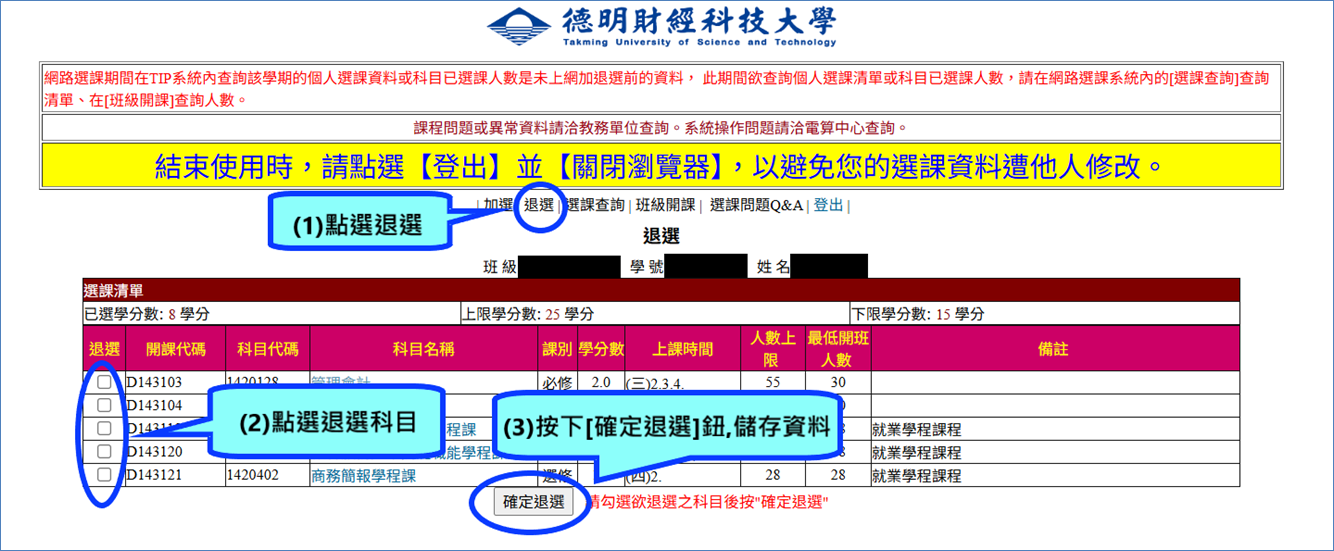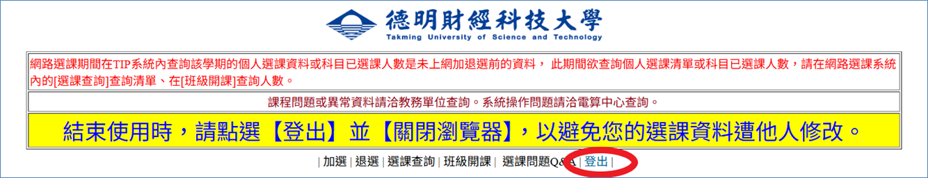 10. ¿ï½Ò¨t²Îµ²§ô¨Ï¥Î®É¡A½Ð°È¥²ÂI¿ï¡iµn¥X¡j¡Aµn¥Xºô¸ô¿ï½Ò¨t²Î¡C